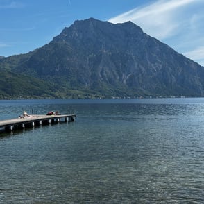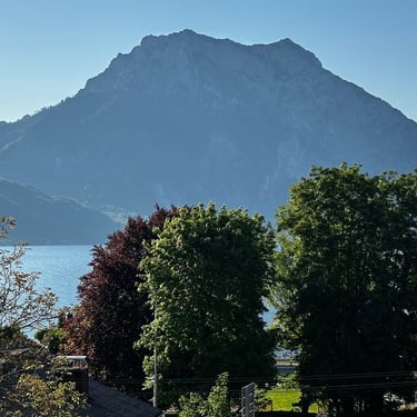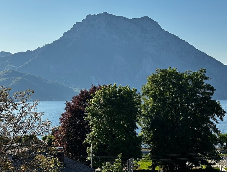 Direkt von Ihrer Wohnung aus eröffnet sich der Blick auf den Traunsee und das eindrucksvolle Bergmassiv des Traunsteins. Ob morgens beim Kaffee oder abends im Sonnenuntergang – dieser Ausblick begleitet Sie durch jeden Urlaubstag.